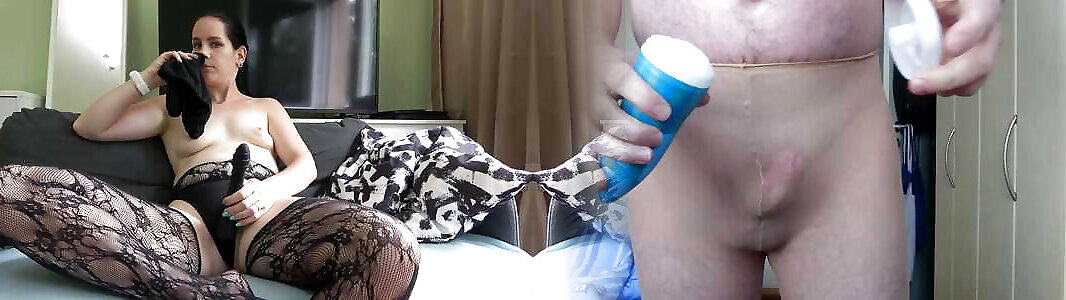 Erotic role play with hot skinny fitness wife in stockings