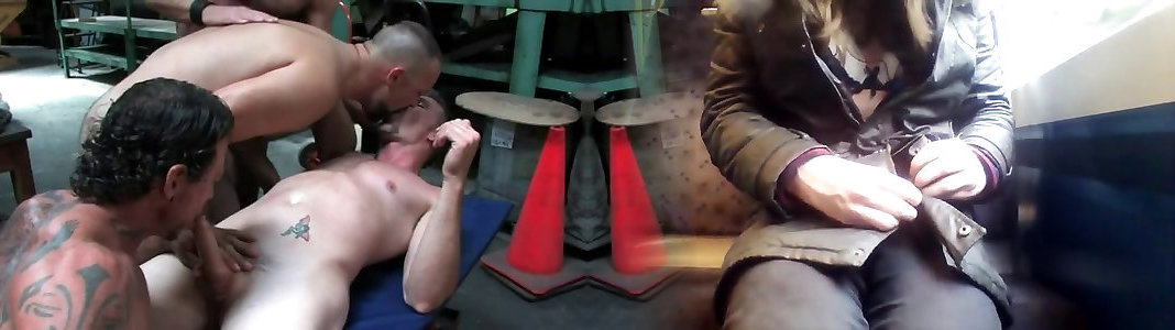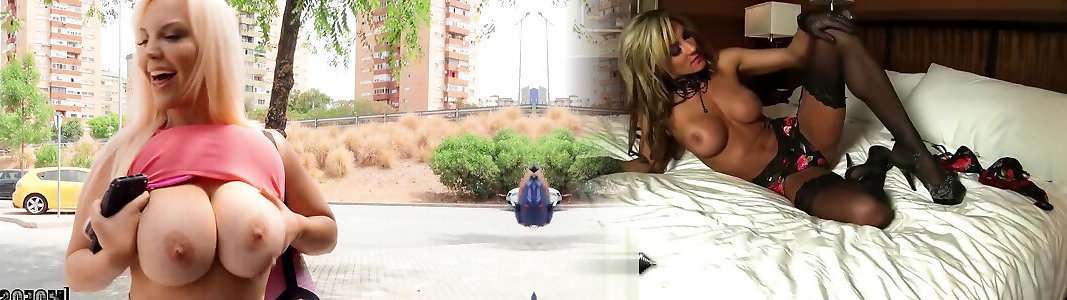 Two impossibly greedy aggressive studs plumb one huge-titted dumpy light-haired outdoors