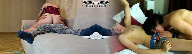 Slutty Asian stepmom carefully sits down on a stepson's cock. Rides her arse on a man meat and gets cum in her gullet