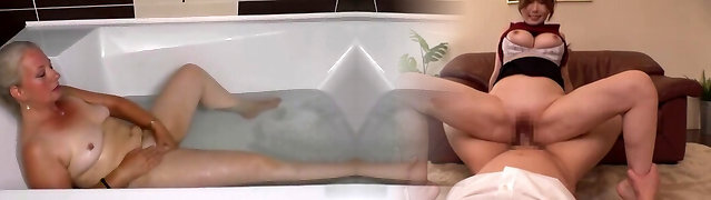 Ginger grandma acts like a young slut sucking knob in bathtub