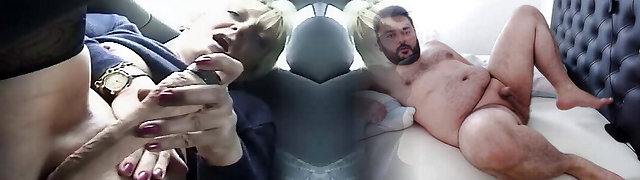stepmom in stocking fucks herself in the car in the mall parking lot - public squirt