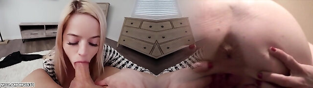 Take it deep Slut Fuck Toy Platinum-blonde Bj'ed and Cum on Face