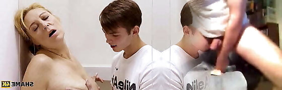 Naughty mature woman leaps on her stepson's cock