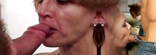 An elder German lady loves pleasing 2 hard cock at the same time