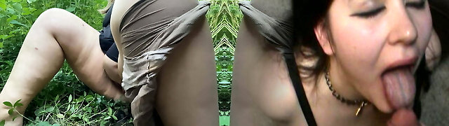 Husband Helps Asian Wifey With Grandpa Lover Outdoors