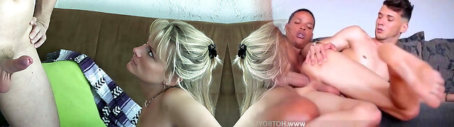 Young guy screws his girlfriend and her mom anal