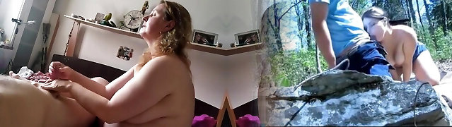 Lessons from a plump Stepmom - Jerking Him off as she gets turned on