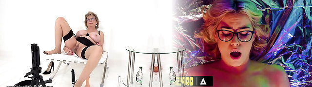 Mature blonde grandmother loves to masturbate her puss