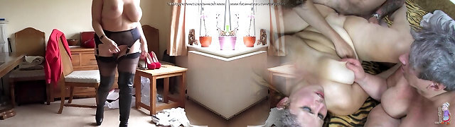 MATURE4K. Fatty mature is quickly banged by inept guy on the grey bed