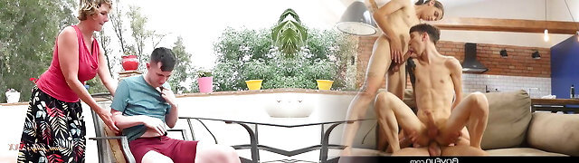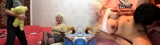 Real Holiday - three huge-chested mature mothers sharing lucky