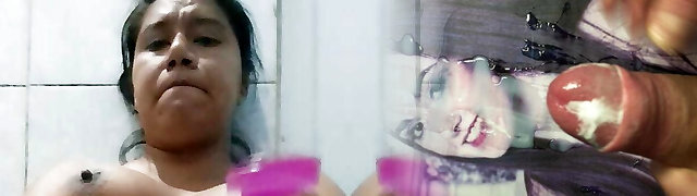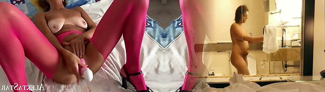 Double penetration in a red pussy and ass. Stepmom gets an orgasm in the shower. Dual dildo drill. Tight ass
