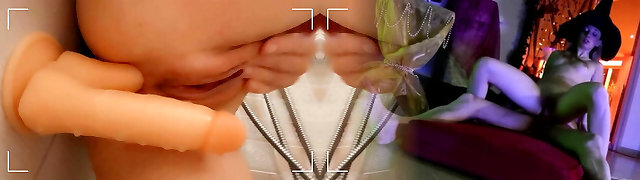 pussy play with enormous dragon dildo