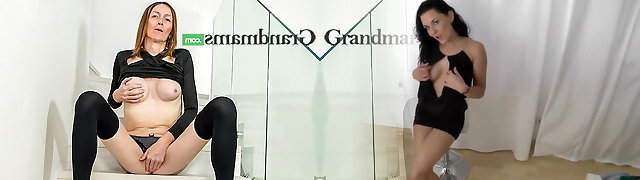 Lesbian euro mature in stockings uses strap on dildo