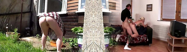 Old couple toying hairy twat before double fucking