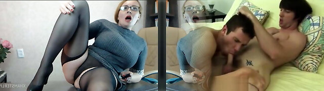 My stepmom plays, sucks and faps with her toy