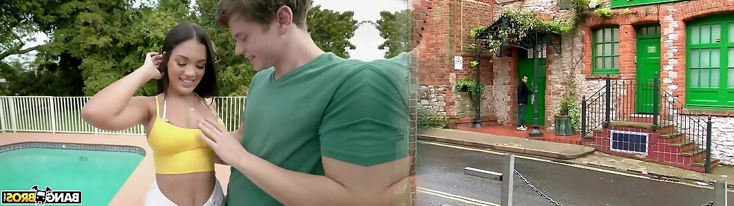 After milking cock right in the pool Latina stunner is romped rear end outdoors