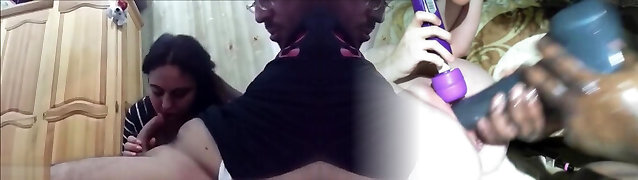 Arab wife with big white ass licking her little pink soles, sucking hairy coochie and fucking hard