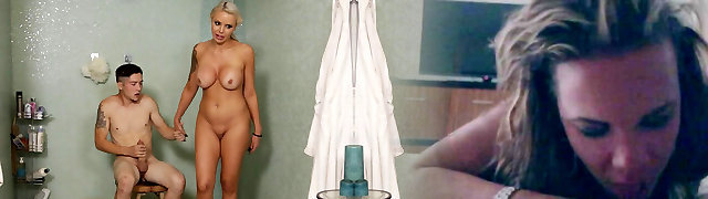 Big Dick Private Massage Parlour Employee who likes Natural Big Tits Blond Wives to cum on their pretty faces