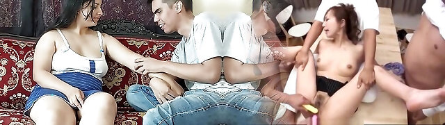 Asian housewife banged by her husband and his friends!