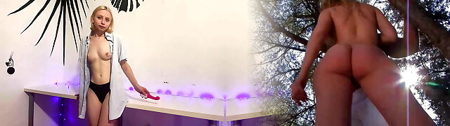 Shaved Coed Makes Herself Burst