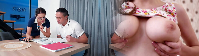 Stepmom help me with my lessons. Milf fucked young Stepdaughter for bad grades