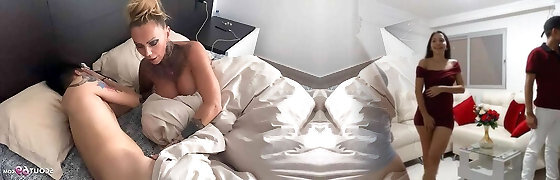 Monique Fuentes fucks Tj's long cock with big knockers