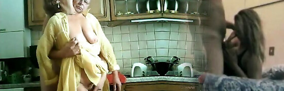 Plump big beautiful woman granny boned in the kitchen