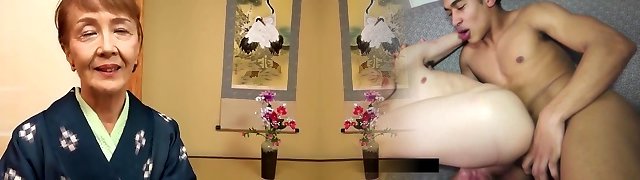 Japanese Grandmother fucks her 2 not step sons