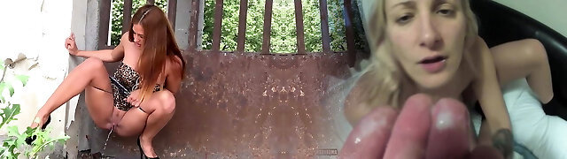 A hot girl with red hair wears wonderful undergarments and provocative clothes to meet a friend and get her pussy and ass fucked
