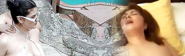 Horny lezzies with huge ass take advantage of home alone to munch their pussies in the pool - Porn in Spanish