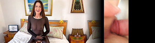 Sexy Step Mom Blowjob and Handjob in Brassiere and Sheer Stockings