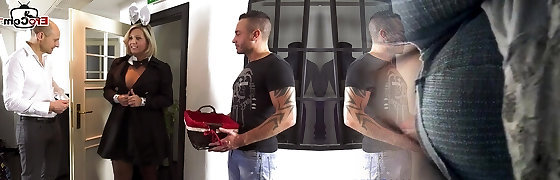 German Huge Boobs Mature tricked Young mechanic Stud to Fuck