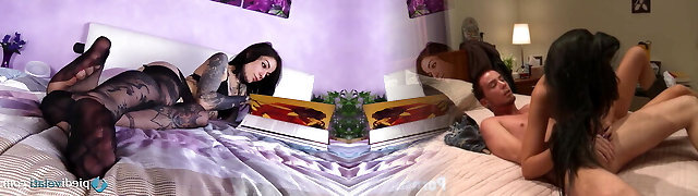 Marie R. wearing black nylon stockings gets prettily licked