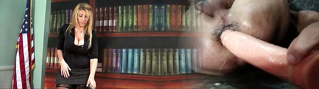 Short haired blonde honey Tanya Virago drills her employee in the office