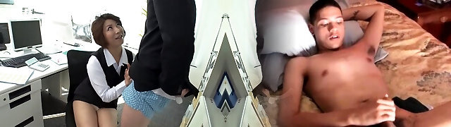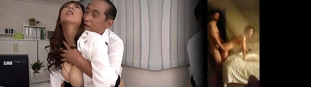 Old Japanese whore pleases office clerk after work.