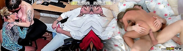 2 steaming German sluts sharing a dildo and a loaded pecker in the office