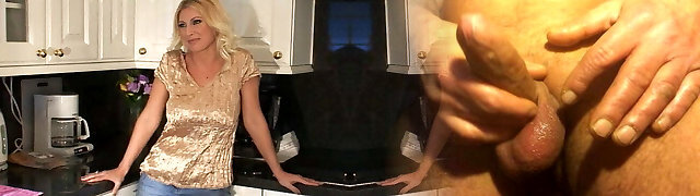 Blond mommy with ideal melons is seducing pool boy for sex on the kitchen