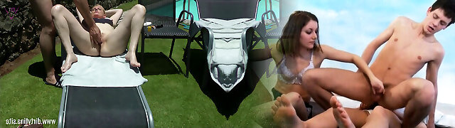 Teasing teenie nymph fucked by her mature neighbor by the pool