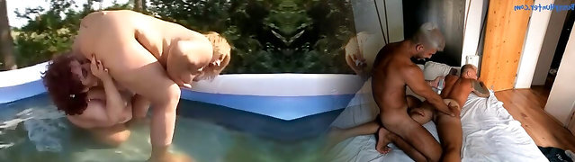 Two Grandmas And Two Dudes Fuck By The Pool