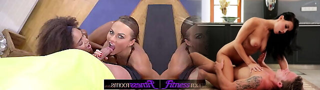 Fitness Rooms Ebony Latina Luna Corazon and mature Lithuanian 3 way