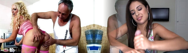 Slender blonde grandma spreads legs for dude